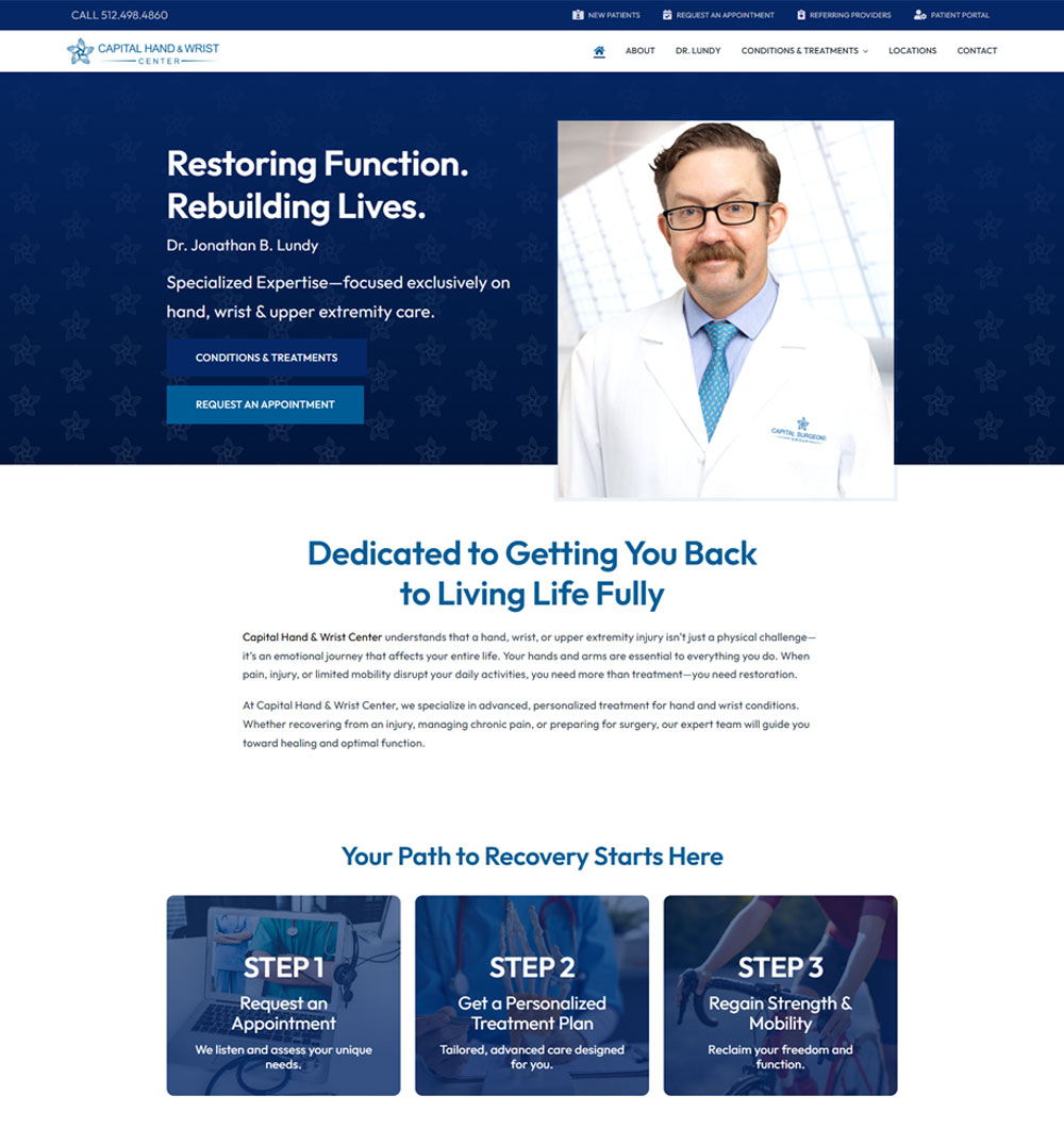 Austin’s healthcare landscape is crowded. The center needed to clearly differentiate itself from general surgeons, orthopedic specialists, and other hand-focused practices. - Patient Reassurance: